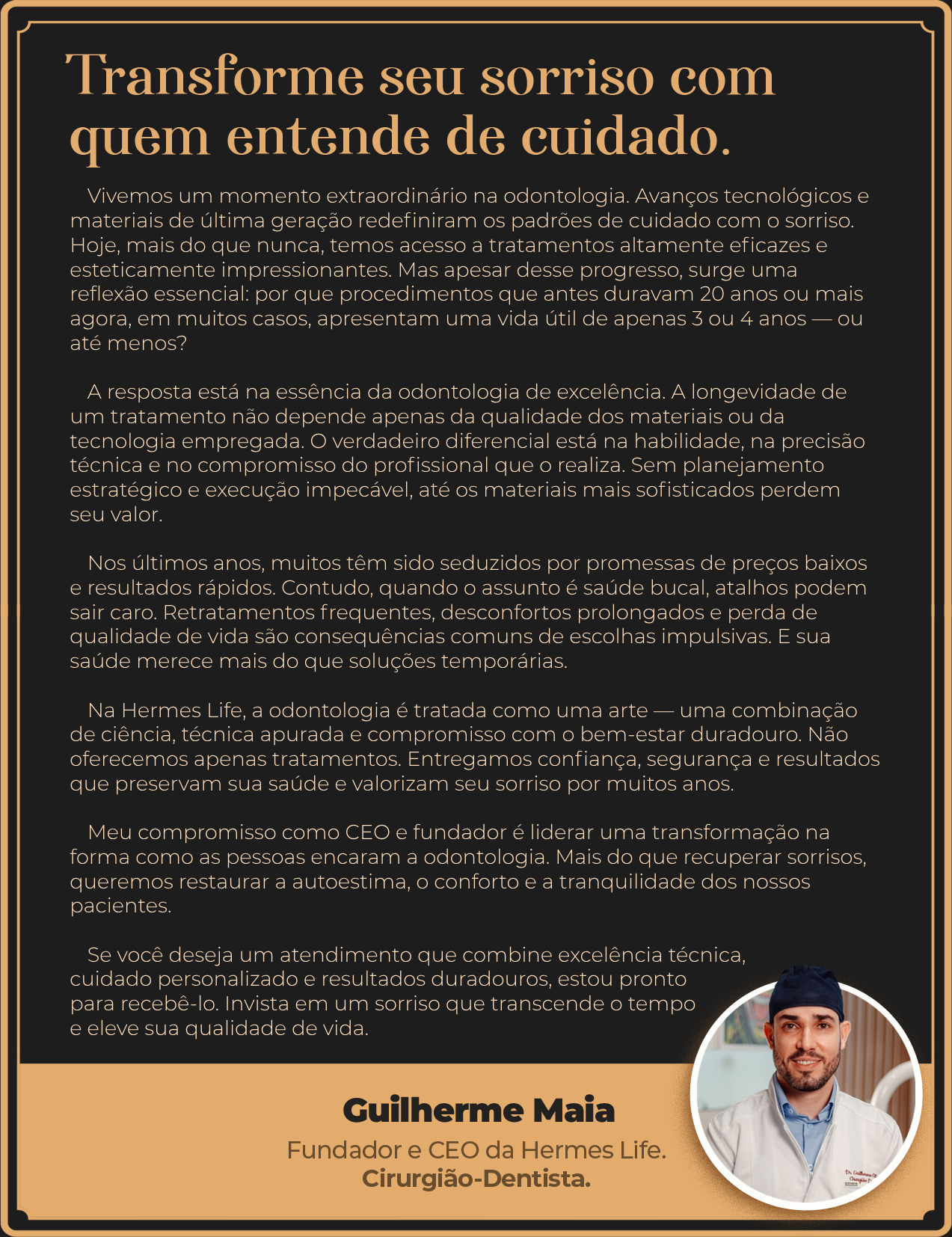 O Hermes Life foi criado para quem busca um atendimento humanizado, resultados impecáveis e benefícios exclusivos para transformar sua experiência odontológica.